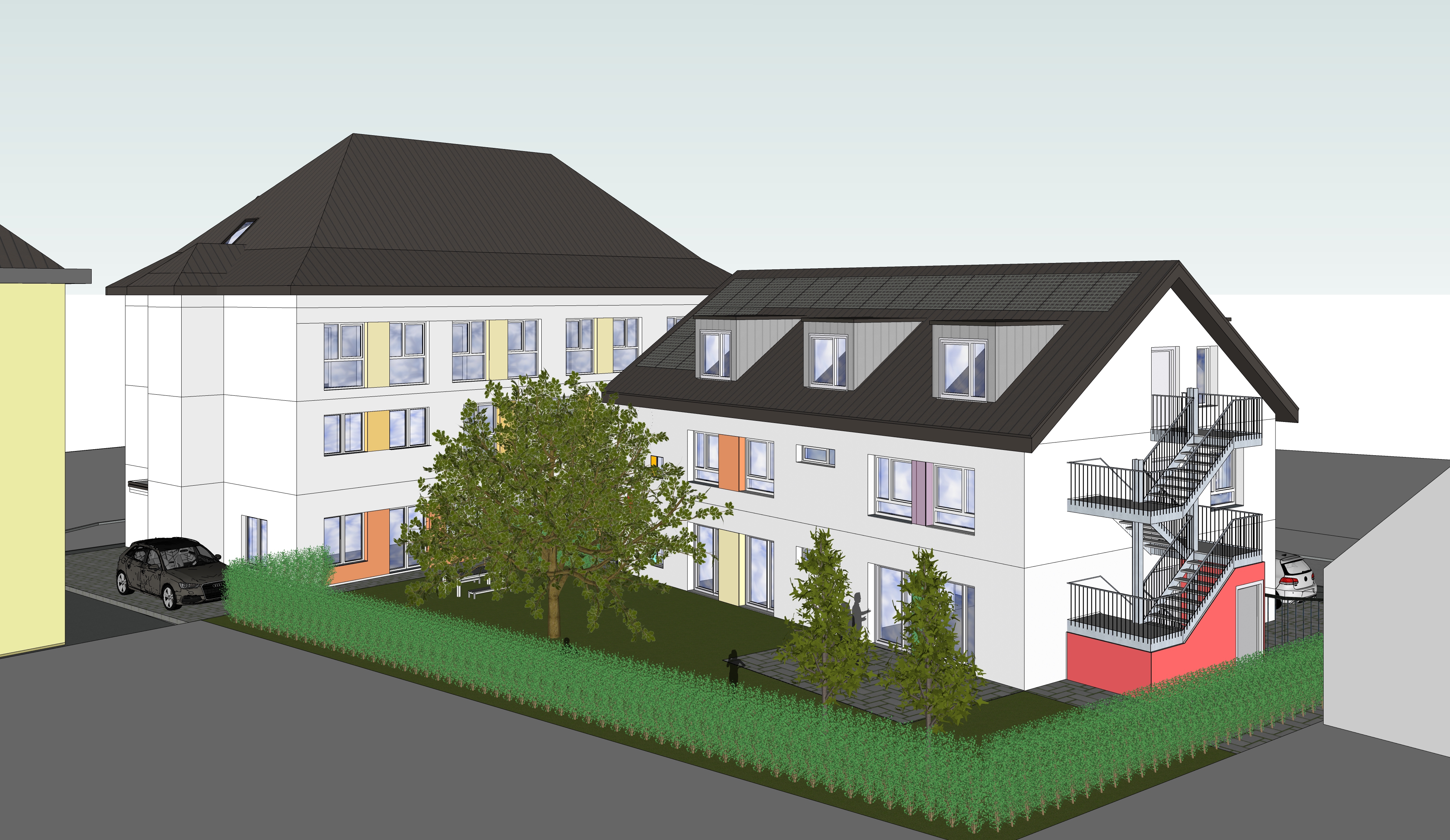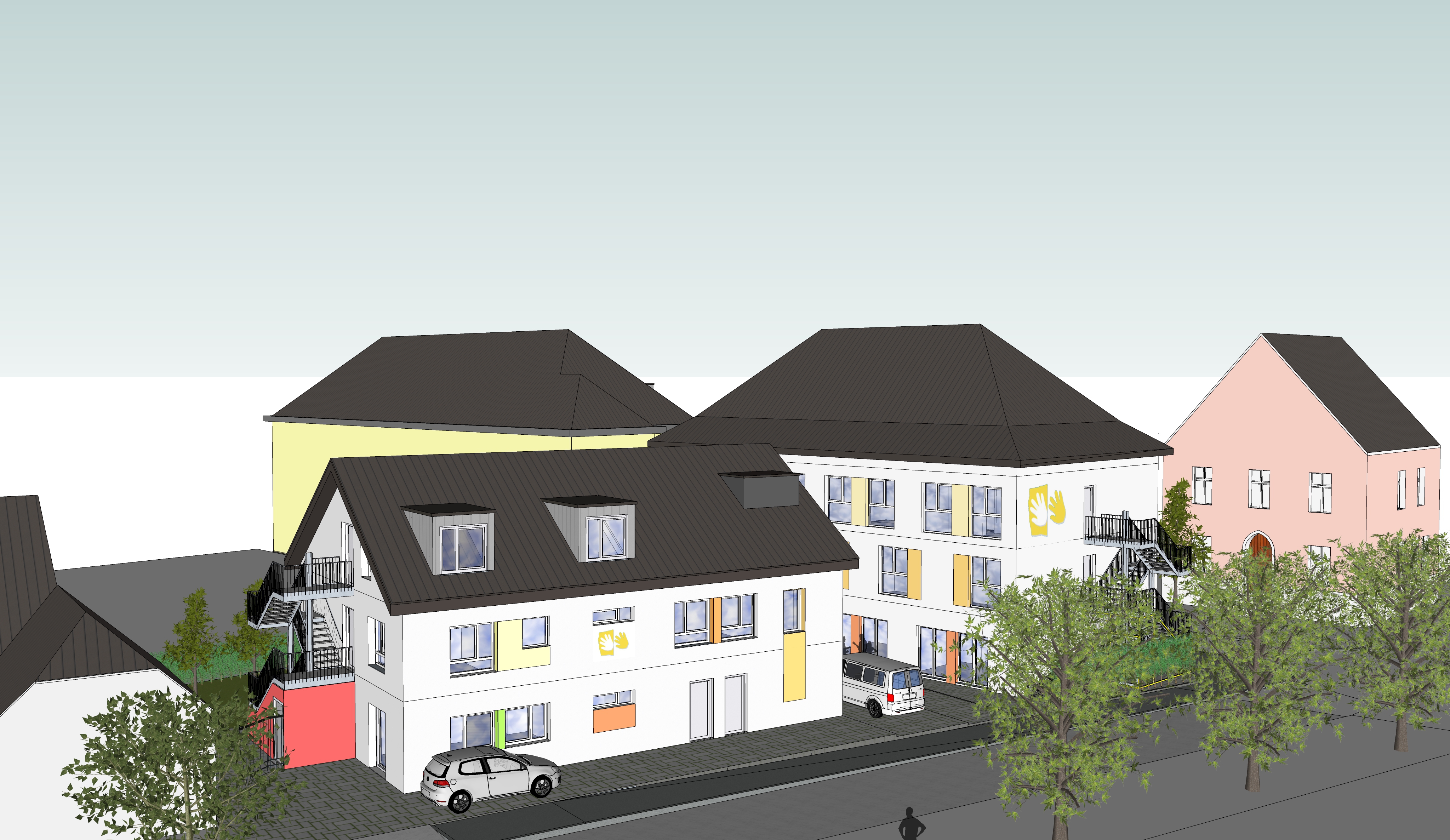 In dem einen Bauteil entstehen der Verselbständigungsbereich und die Tagesgruppe (teilstationäres Angebot) der Einrichtung, ebenfalls inklusiv gebaut.