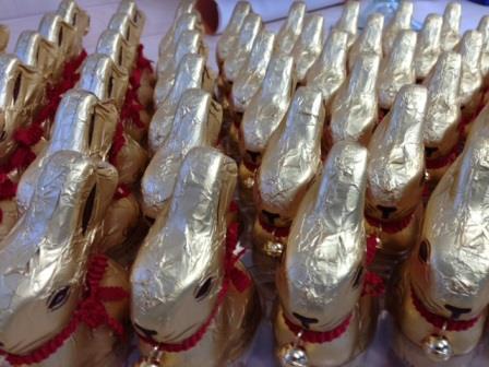 Die süßen Hasen werden noch bis Ostersonntag versteckt. Dann erst verteilt sie der Osterhase.