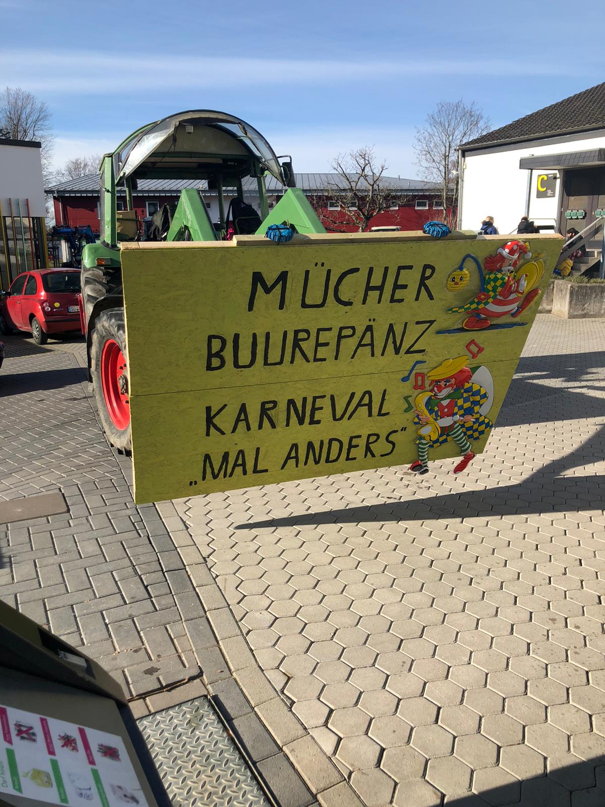 Eine besondere, ungeplante Überraschung war der Besuch der Mucher Buurepänz. Der ansonsten im Karneval aktive Verein vieler junger Männer besuchte das Kinderheim mit einem Traktorencorso. Für jedes Kind hatten sie eine gefüllte Kamelletüte dabei.