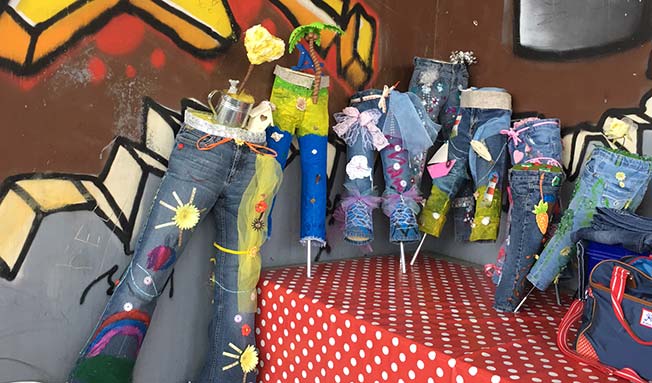 Nach einem internen Jeans-Sammel-Aufruf in der Firma wurden die Hosen zusammen mit den Kindern bunt bemalt und verziert. Das hat viel Spaß gemacht und die Ergebnisse können sich sehen lassen!