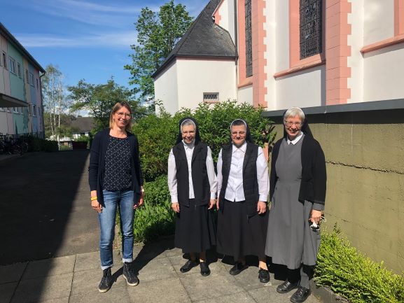 Sr. Maria del Rosario, Generaloberin der Schwestern der Christlichen Liebe, und ihr Assistentin Sr. Adalberta besuchten am 14. Mai 2021 das Kinderheim Pauline von Mallinckrodt. Nach ausführlichen Gesprächen mit den drei Schwestern, die in Siegburg einen kleinen Konvent bilden, tauschten sich die beiden Ordensleute auch mit Heimleiterin Sonja Boddenberg aus. Themen waren die Auswirkungen der momentanen Corona-Pandemie auf Heim und Orden, die zukünftigen Planungen des Ordens für den Standort in Siegburg und weltweit.