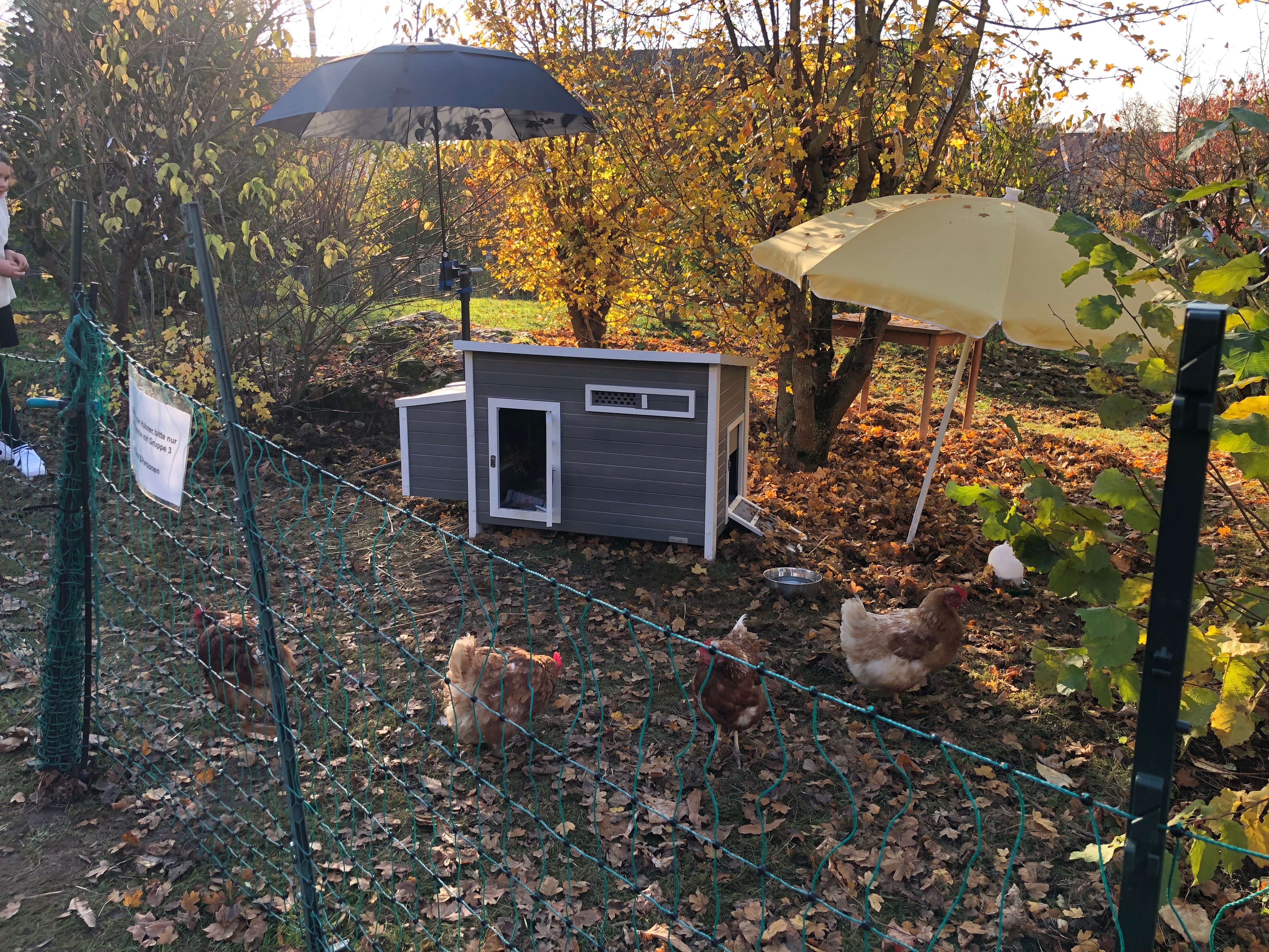 Vom 23.10.2021 bis zum 20.11.2021 besuchen uns vier Hühnerdamen in der Pauline. Sie gehören Jennifer Kreitz, der Naturpädagogin aus Overath, die Hühner an Privatpersonen oder Einrichtungen vermietet. Frau Kreitz brachte uns die Hühner samt Stall, Futter und einem Steckzaun. Nun verbringen sie die nächsten vier Wochen bei uns auf dem Abenteuerspielplatz.