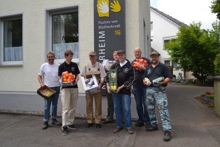 Die Wolsdorfer Kirmes ist gerade abgebaut, da klingelt es an der Tür des Kinderheims. Acht Wolsdorfer Männer, alle Mitglied im Junggesellenverein Alt-Wolsdorf, stehen vor der Tür und beschenken die Kinder und Jugendlichen mit all dem, was von ihrer Cocktailbude übrig geblieben ist - leckere Säfte, Salzstangen, Obst.