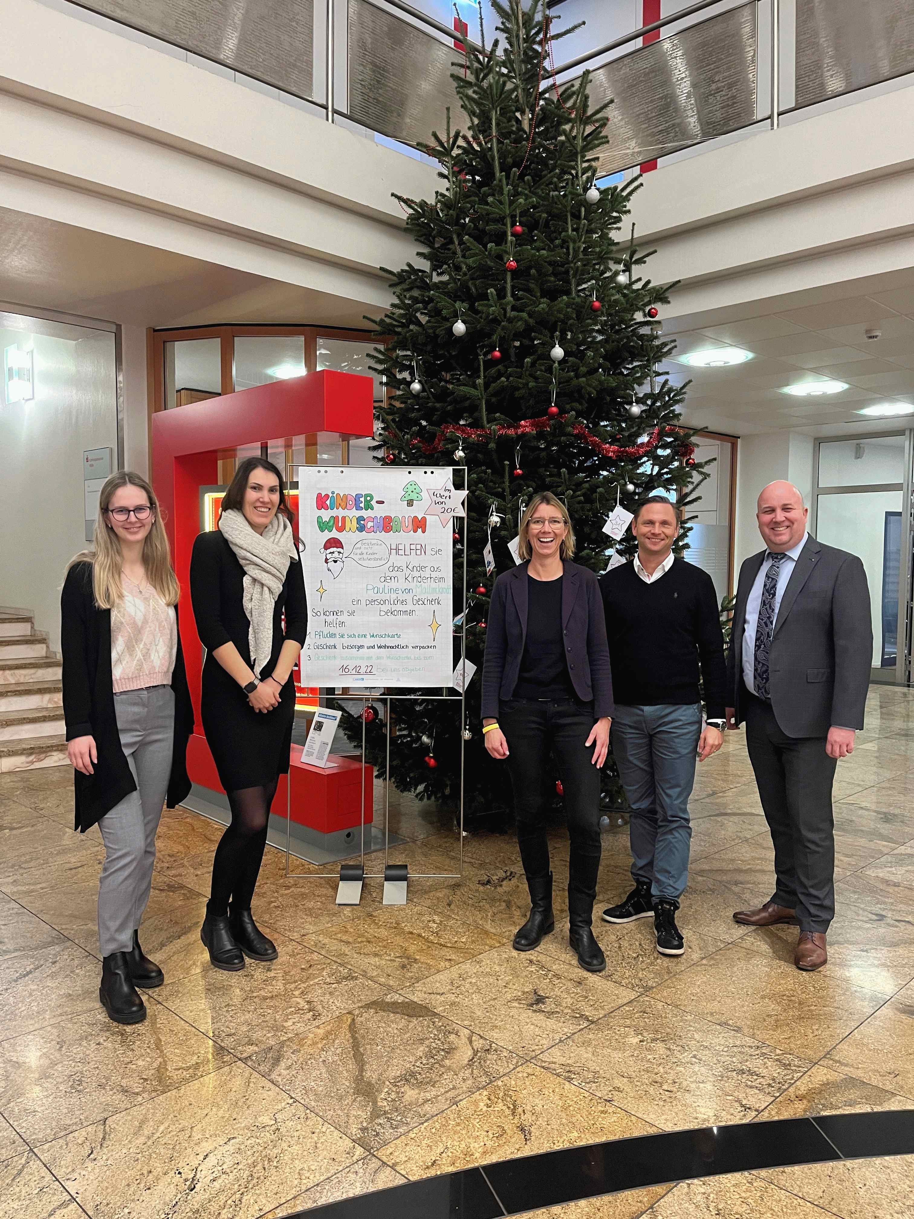Die Kreissparkasse Köln, Regionalfiliale Siegburg, führt in diesem Jahr mit Ihrem Regionaldirektor Thomas Hockenbrink und den Mitarbeiterinnen Sarah Fromm und Johanna Lohmar eine Kinderwunschbaumaktion durch.