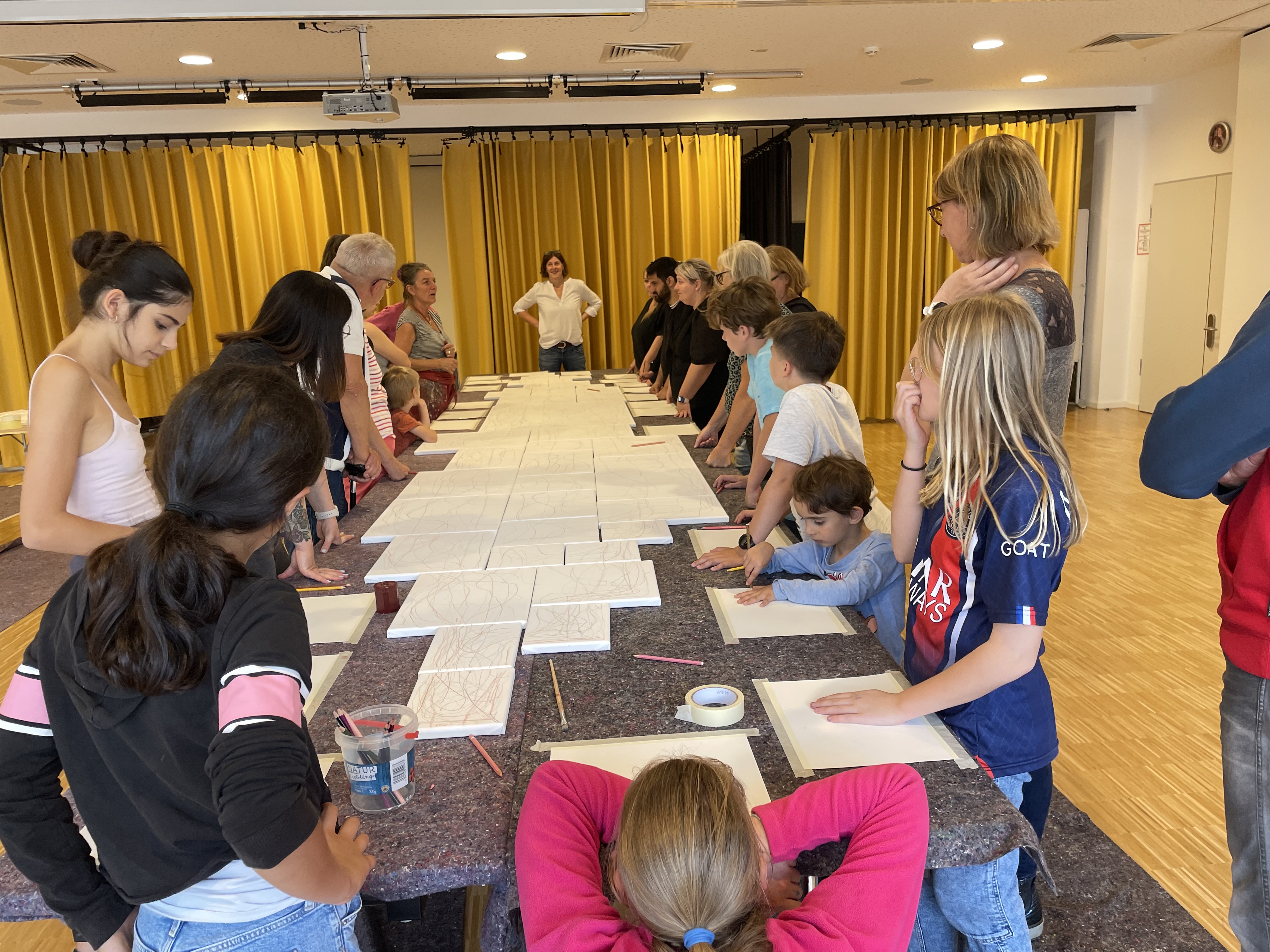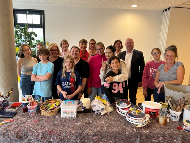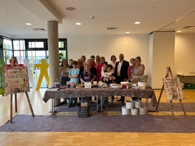 Sich begegnen – gemeinsam kreativ sein – im Bistro Pauline einen Wohlfühlort schaffen. Das war das Motto des von der Städte- und Gemeinden-Stiftung der Kreissparkasse Köln geförderten Kunstprojekts „Wir schaffen uns einen Ort der Begegnung“. Zwei Tage lang haben 25 Kinder, Jugendliche und Erwachsene jeden Alters angeleitet von der Künstlerin Martina Clasen mit Feuereifer gemalt und gestaltet, um unser Bistro künstlerisch zu verschönern. Eingeladen waren alle Wolsdorfer*innen, Nachbar*innen, Lehrer*innen, Kita-Familien, JOVITA-Bewohner*innen und -Mitarbeiter*innen, Bistro-Liebhaber*innen und nicht zuletzt Mitarbeitende und Bewohner*innen der Pauline.