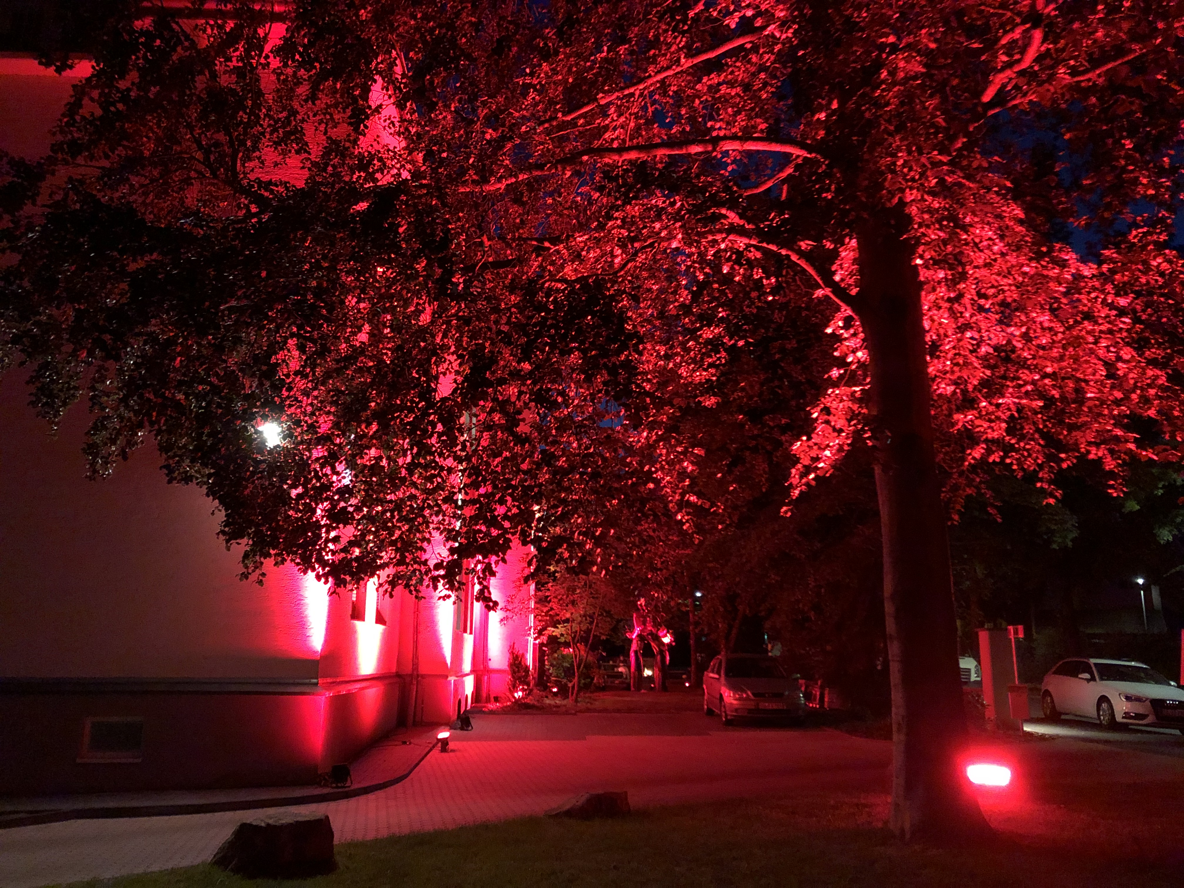 Leuchtendes GELB ist eigentlich die Hausfarbe des Kinderheims Pauline von Mallinckrodt. Am Abend des 22.06.2020 jedoch leuchtete das Haus in feurigem, warnenden ROT.