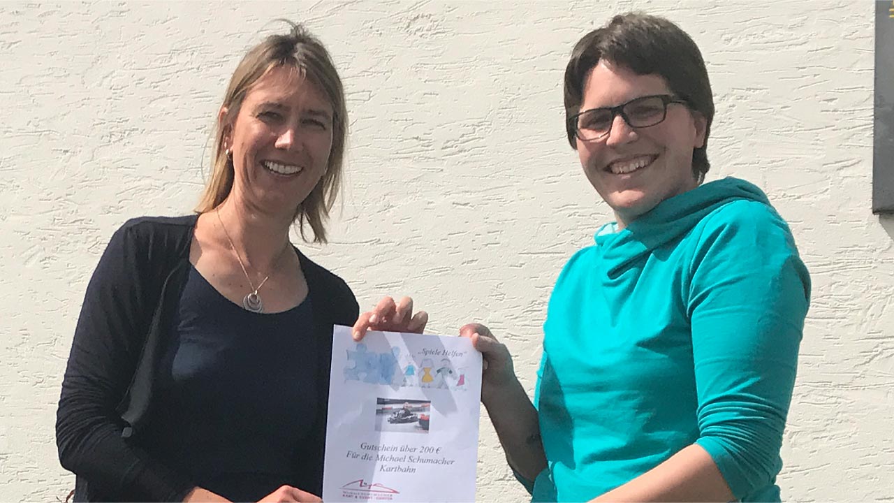 Zum wiederholten Male spendete Sie die Erlöse aus der von ihr ins Leben gerufenen Aktion »Spiele helfen« für die Pauline. Einen Gutschein für die Kerpener Kart-Bahn überreichte sie letzten Freitag Heimleiterin Sonja Boddenberg.