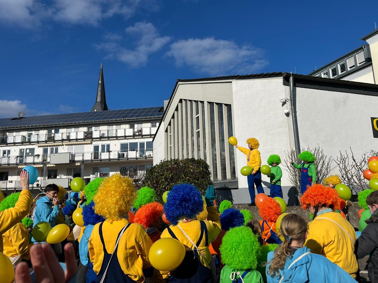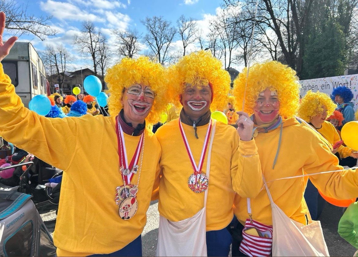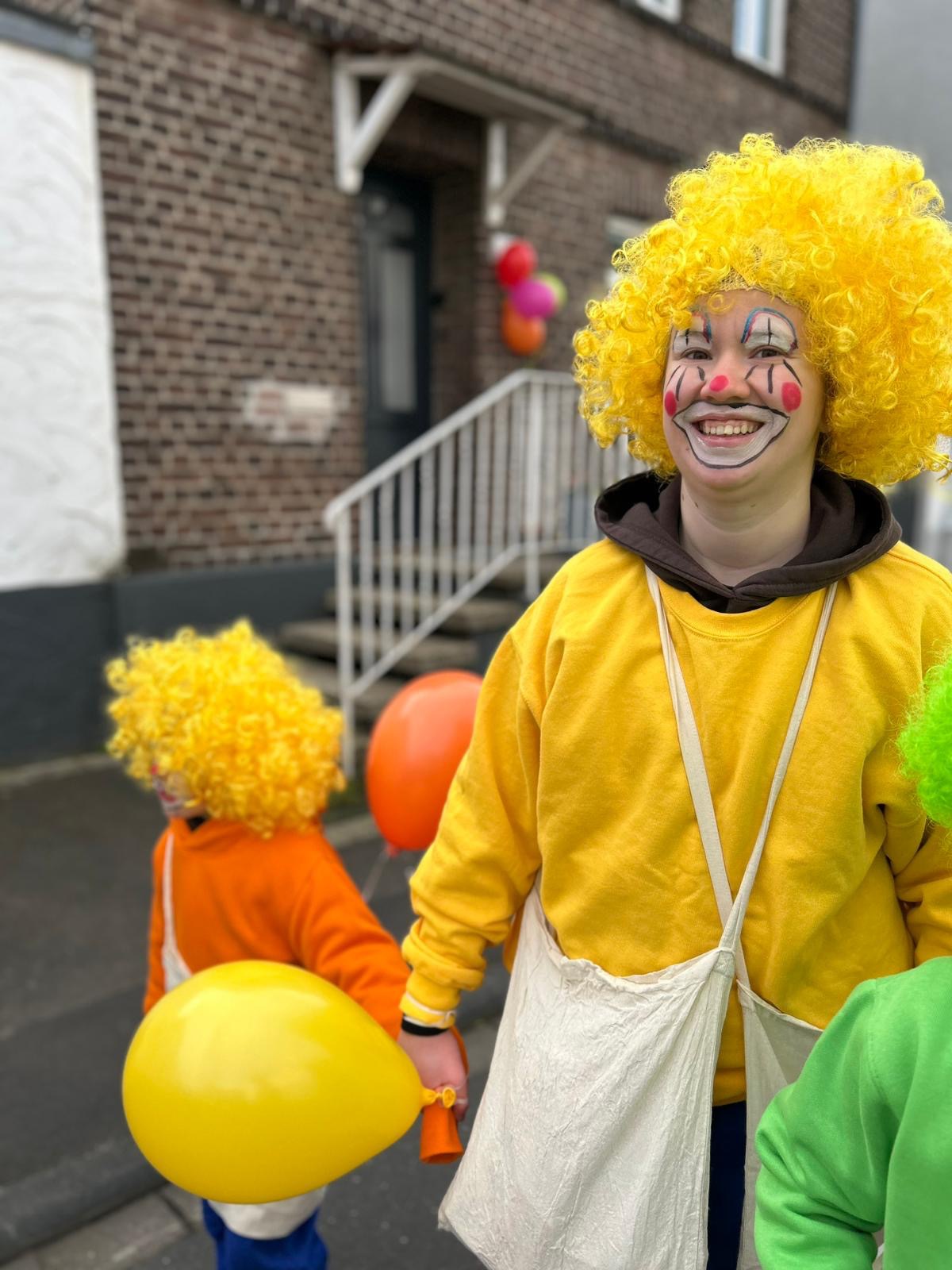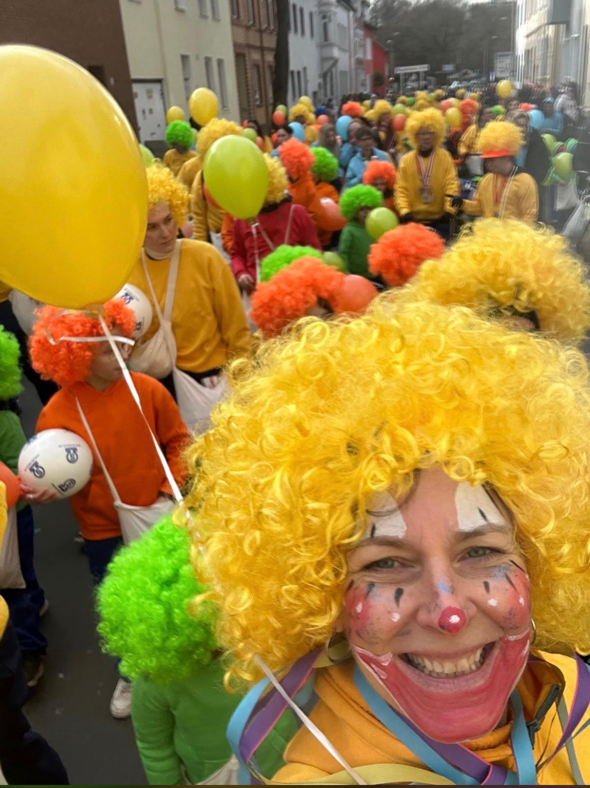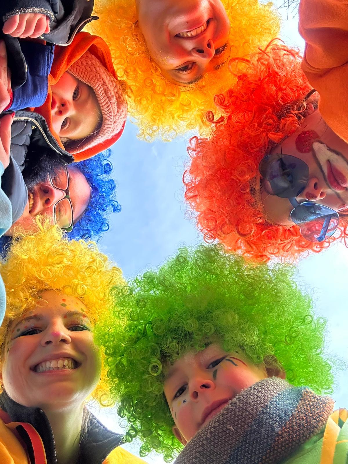 Passend zu unserem neuen Logo präsentierten wir uns als Clowns in unseren Einrichtungsfarben – fröhlich, kreativ und nicht zu übersehen! Gemeinsam haben wir gelacht, getanzt und Kamelle geworfen.