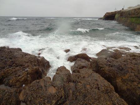 Versehen mit einem Lunchpaket fahren wir erst um 1330 Uhr in das nächste Städtchen - Comillas. Eine lange Bucht öffnet sich vor unseren Augen, die von einem langen Sandstrand umsäumt wird. Links und rechts bauen sich steile Felsen auf, an die der wilde Atlantik, nach seiner langen Fahrt von Amerika, wild anbrandet. Das Wetter? Na ja - wer ihm morgens eine lange Nase zieht!