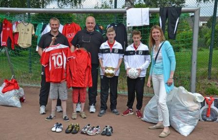 Über eine tolle Spende freuten sich Jason und Chris am letzten Sonntag. Die C-Jugend der Sportfreunde Troisdorf überbrachte den fußballbegeisterten Jungs eine große Menge an Trikots und Fußballschuhen. Den größten Begeisterungssturm lösten zwei FC-Trikots aus, die - zurück in der Gruppe - sofort anprobiert wurden.