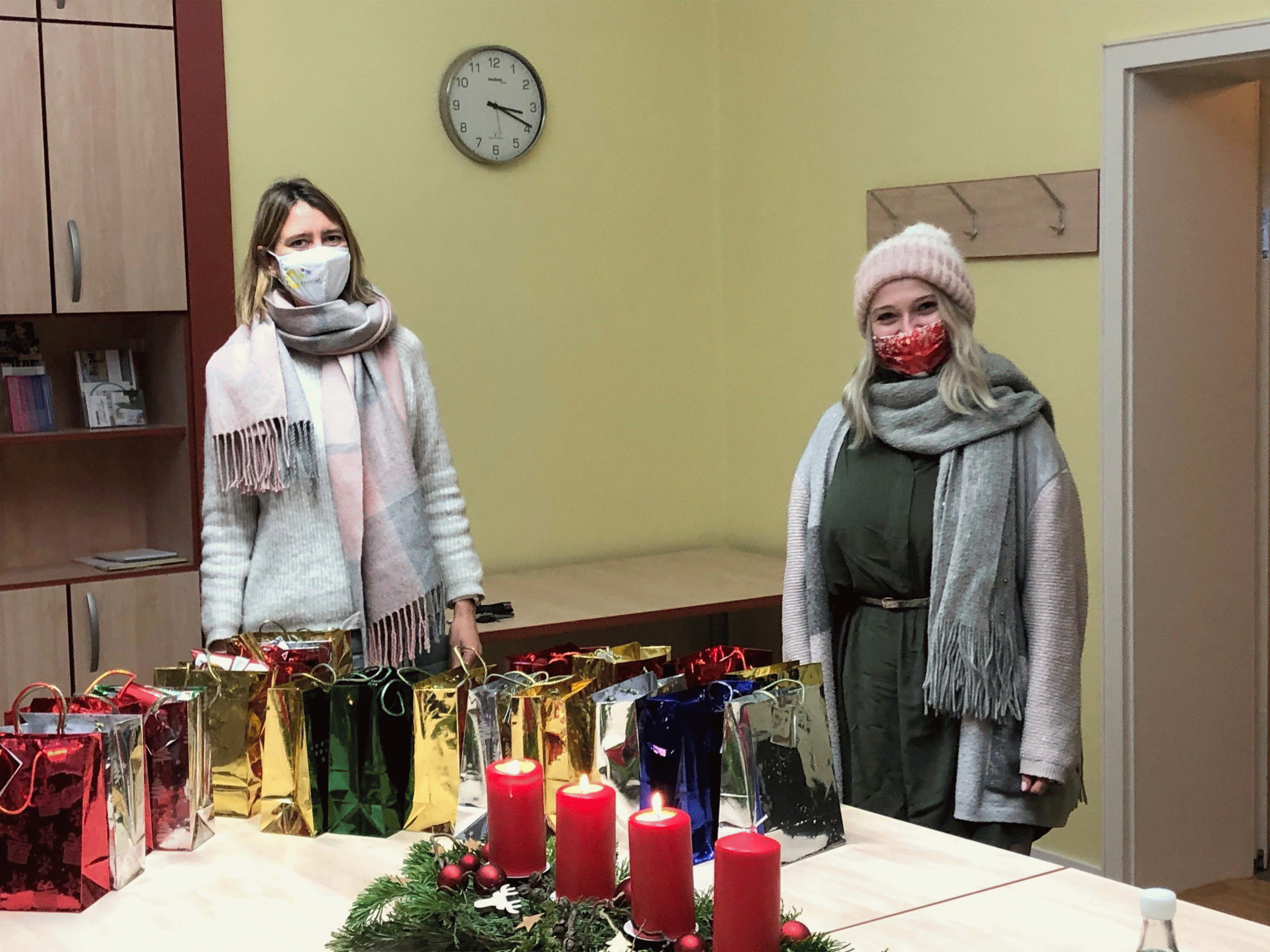 Mit 20 glitzernden, gefüllten Weihnachtstüten stand Frau Keller, Auszubildende im Reisebüro Albatros aus Troisdorf, vor der Tür und überreichte Heimleiterin Sonja Boddenberg im Namen ihrer Chefin Bianca Kann und des ganzen Büros die Geschenke.