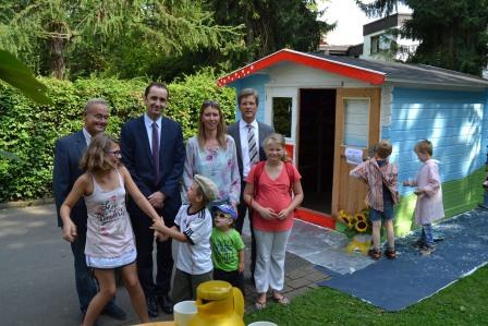 Offiziell eröffnet wurde gestern das neue Spielebüdchen auf dem Spielplatz des Kinderheims Pauline von Mallinckrodt. Hier können sich die Kinder und Jugendlichen zukünftig jeden Nachmittag viele verschiedene Spielmaterialien ausleihen. Besonderen Anklang fanden bei der Eröffnung die Mini-Rikschas, Hüpfstäbe und Hockeysets. Angeschlossen an das Spielebüdchen ist ein kleiner Kiosk, an dem sich die Kids verschiedene Süßigkeiten von ihrem Taschengeld kaufen können, gerade für die jüngeren, die noch nicht alleine in die Stadt dürfen, eine attraktive Gelegenheit.