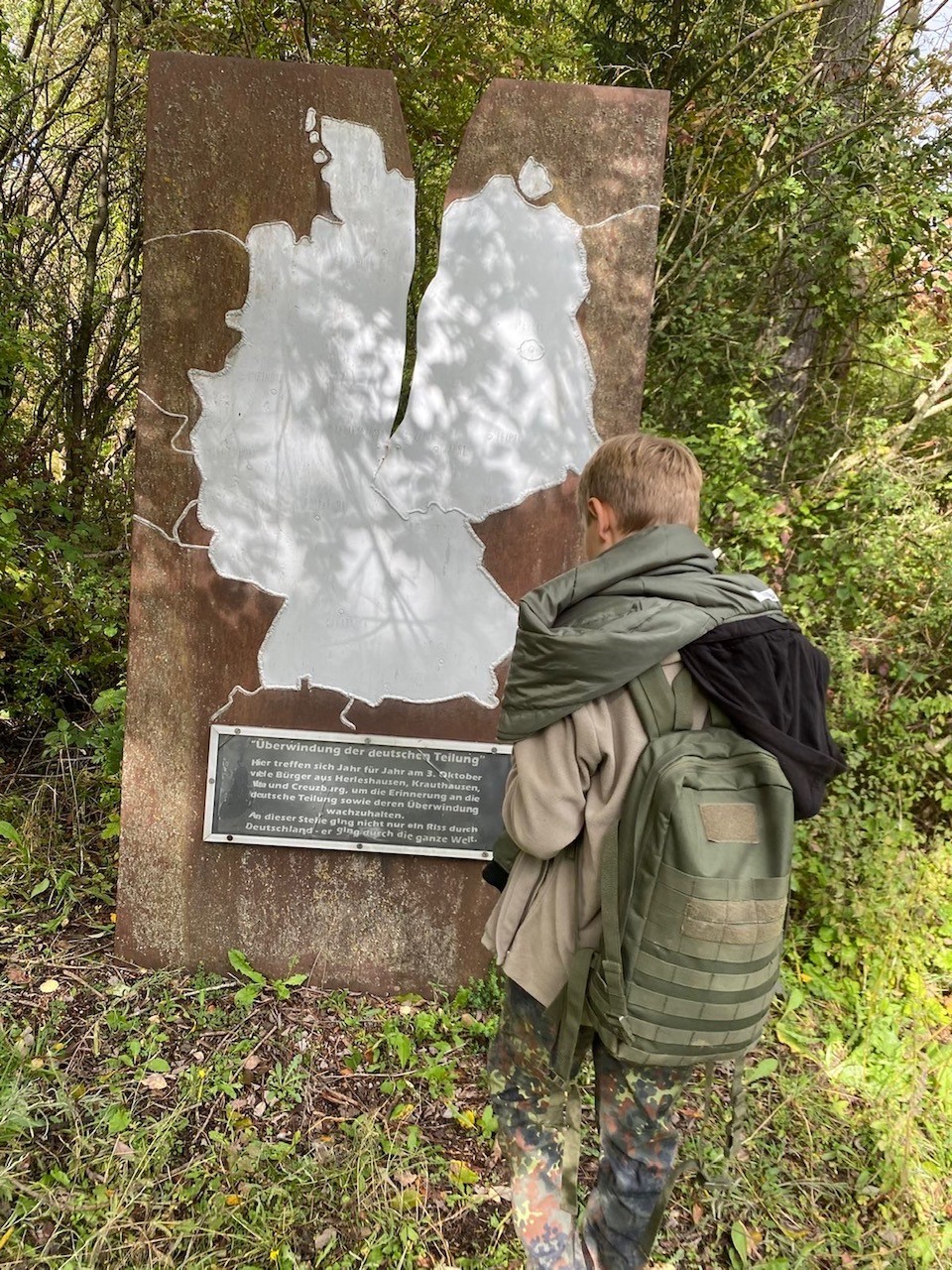 Eine Mischung aus Stolz über die bisherigen Leistungen, trainierte Beine und die Tatsache, das Ziel vor Augen zu wissen wirkte sich in besonderem Maße auf die Motivation der Jugendlichen aus, sodass bereits die ersten 6 km mühelos und in Windeseile bewältigt wurden. Hierbei passierte die Wandergruppe eines der ältesten Grenzmuseen der Bundesrepublik, das Grenzmuseum Schifflersgrund. Neben einem Original-Grenzkontrollhäuschen, konnten viele eindrucksvolle Fahrzeuge und Hubschrauber gesichtet werden.