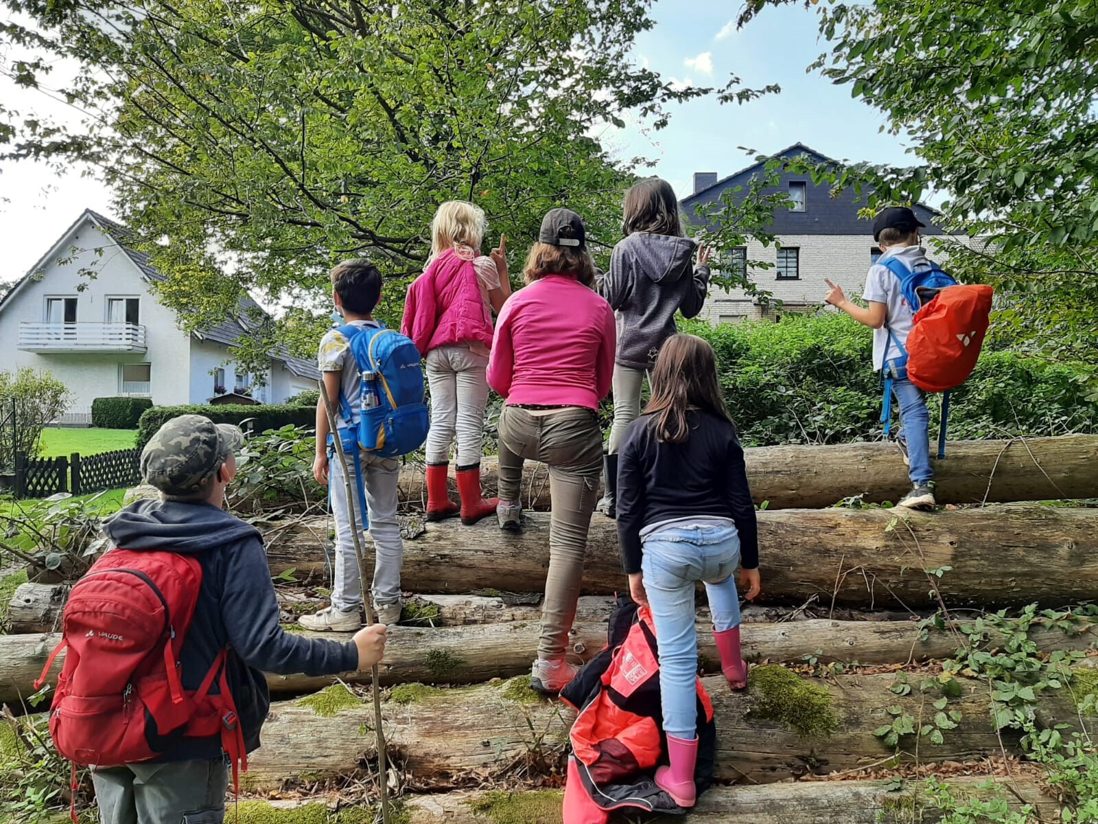 Bei bestem Wetter und ausgelassener Stimmung begann unsere kleine Wanderung. Schon auf dem Weg in den Wald begannen die Kinder ganz aufgeregt Fragen zu stellen, was wir denn so alles unternehmen wollen.