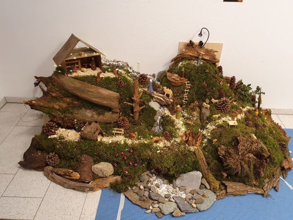 Alina Sänger, Mitarbeiterin des Ambulanten Dienstes im Kinderheim Pauline, lüftete das Geheimnis und zauberte aus den vielen Kisten eine wunderschöne Krippe hervor. In vielen Stunden Arbeit hat sie das Schmuckstück im Bistro Pauline aufgebaut, wo es noch bis Mitte Januar zu bewundern ist. Ein herzliches Dankeschön für dieses Kunstwerk.