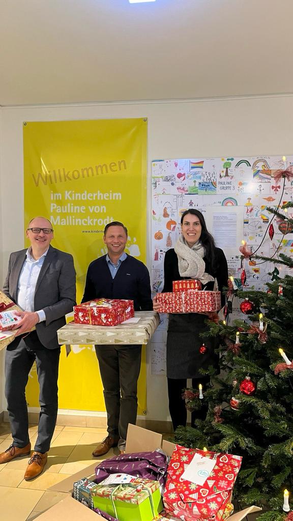 Auf die Kreissparkasse ist Verlass: Seit Jahren unterstützt die Siegburger Filiale der Kreissparkasse Köln das Kinderheim Pauline mit großzügigen Spenden und Aktionen. Bei der Wunschbaum-Aktion erfüllten Mitarbeitende sowie Kund*innen unseren Kindern und Jugendlichen schon zum zweiten Mal größere und kleinere Wünsche. 135 Geschenke konnten Daniel Bosch, Leiter Privatkunden und Vermögensberatung der Kreissparkasse Köln in Siegburg, und Sarah Fromm, Vermögensberaterin und Initiatorin der Wunschbaum-Aktion, in die Pauline bringen. Geschäftsführer Thomas Arentz (M.) nahm die Päckchen stellvertretend entgegen und bedankte sich herzlich.