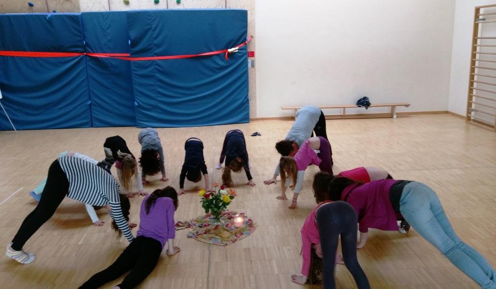 Am 22. und 23.03.16 trafen sich elf Jungen und Mädchen in der heiminternen Turnhalle, um am von Alicia Rebelein (BP Gr.7) und Sandy Schlumm organisierten Yogakurs teilzunehmen. Dieser Kurs stellte im Rahmen des Handlungskonzepts „Entspannung“ ein Ferienangebot dar, um den Kindern den Meditations-Sport Yoga näher zu bringen. Die Kinder waren voll bei der Sache und konnten dabei einige Yogaübungen – den Sonnengruß, den Hund und den Lotussitz – sowie entspannende Atemübungen kennenlernen. Zum Schluss eines jeden Tages gab es eine beruhigende Entspannungsgeschichte.