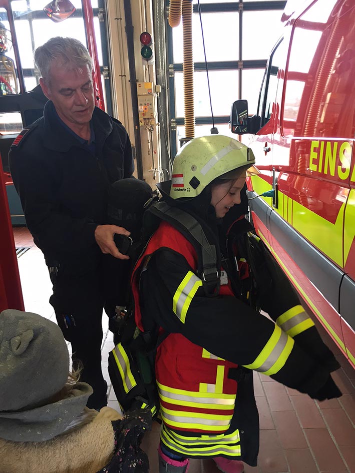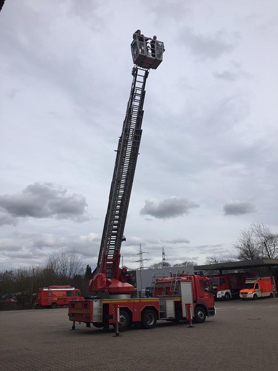 Uns wurde gezeigt wo die Feuerwehrleute ihre Maschinen reparieren, die Schläuche waschen und trocknen und wie die Notrufe in der Leitstelle eingehen. Das absolut coolste war die Fahrt mit der Drehleiter ganz hoch hinaus.