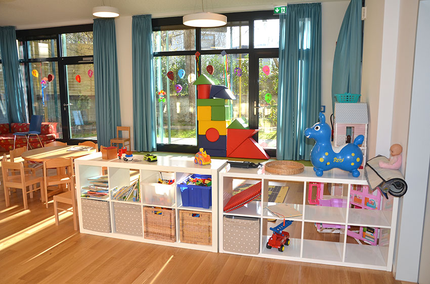 Der Raum wurde so angepasst, dass er nun wie ein 3. Erzieher dem hohen Bewegungsdrang, einer starken Ablenkbarkeit und einem hohen Bedürfnis nach Sicherheit und damit Überschaubarkeit und Transparenz der Kinder mit entsprechenden Mitteln entgegenwirkt. Dazu zählen zum Beispiel eine ausbalancierte Raum- und Lichtgestaltung, eine reizreduzierte und harmonische Flurgestaltung, große Spiegel und überschaubare Kleiderschränke in den Kinderzimmern.