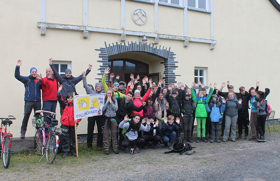 Einige der unermüdlichen Jugendlichen besuchten mit Pädagoginnen und Pädagogen abseits des Weges ein ehemaliges KZ. In diese wurden Häftlinge aus dem KZ Buchenwald gebracht, um dort bei der Produktion von Raketen zu helfen. In den Schächten wurden Motoren getestet und dem unmenschlichen Regime der Nazis war es egal, wenn die Inhaftierten dort bei den Versuchen zu Hauf starben. Fehler wurden auf das Schlimmste bestraft. So wurden die Delinquenten z.B. an eine Eiche gekettet, um dort vor den Augen der anderen Gefangenen ausgepeitscht zu werden. Die Jugendlichen sahen sich ohne ein Wort zu sprechen eine Dokumentation an. Bei der weiteren Wanderung waren alle zu tiefst schockiert.